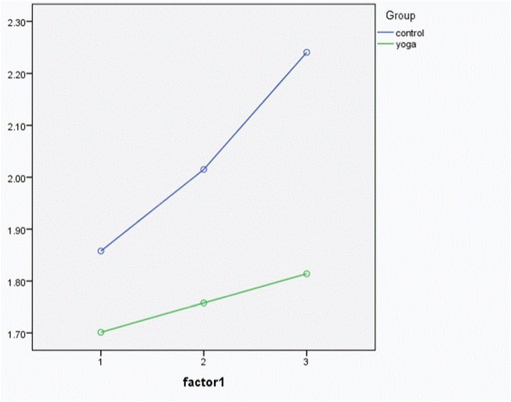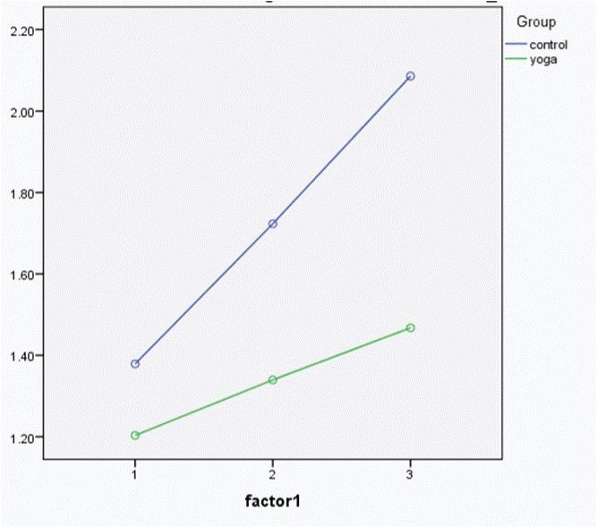The authors of the article have found that both IL-6 and TNF-α increase with a bout of exercise of moderate intensity and further increased with a bout of strenuous exercise. The levels of both cytokines were lower in long term practitioners of Yoga when compared to controls. Further, the rate of increase in levels of pro-inflammatory cytokines was less in Yoga group compared to controls, probably indicating that regular practice of yoga cushions the effect of physical stress on our immune system and protects the body against unnecessary inflammation [40]. (Fig 5 and Fig 6)