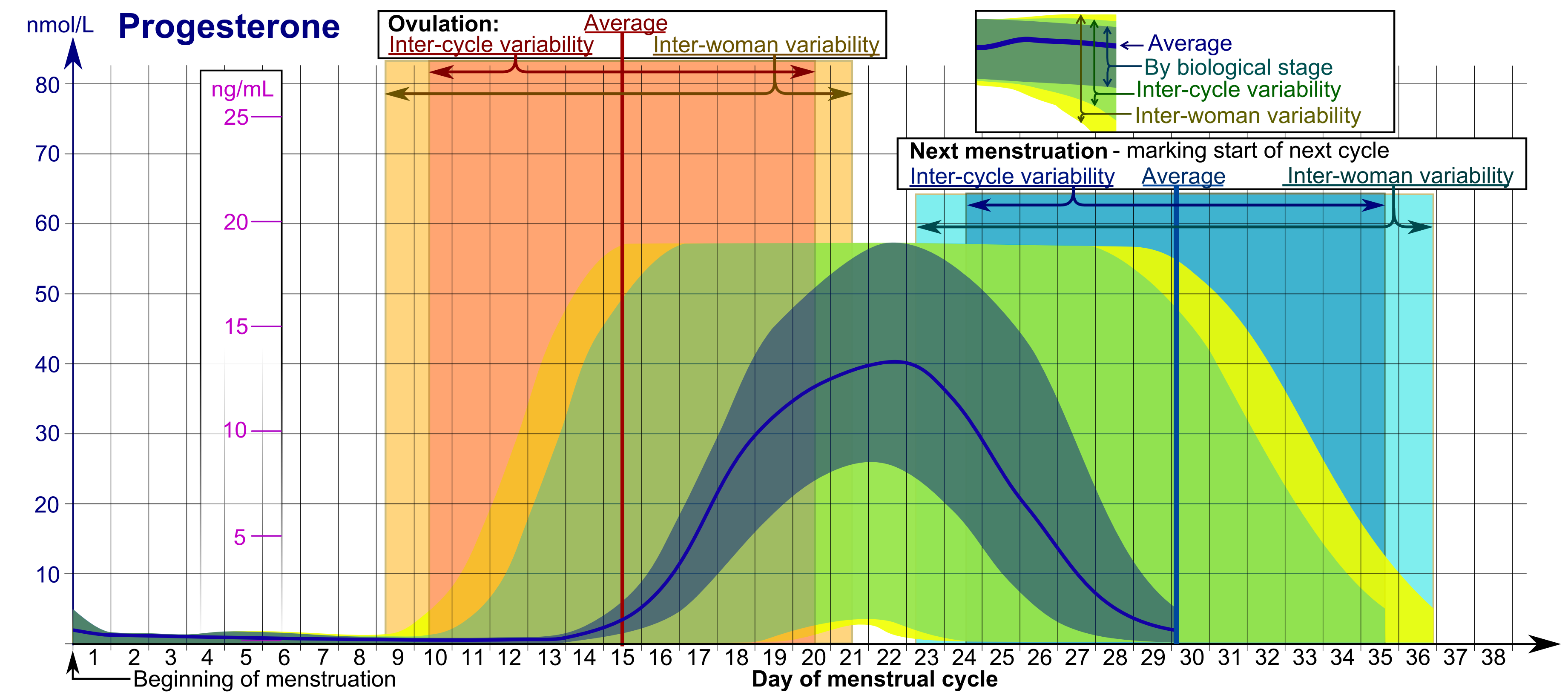 - Häggström M. Reference ranges for estradiol, progesterone, luteinizing hormone and follicle-stimulating hormone during the menstrual cycle. WikiJournal of Medicine. 2014; 1:1. [Crossref]