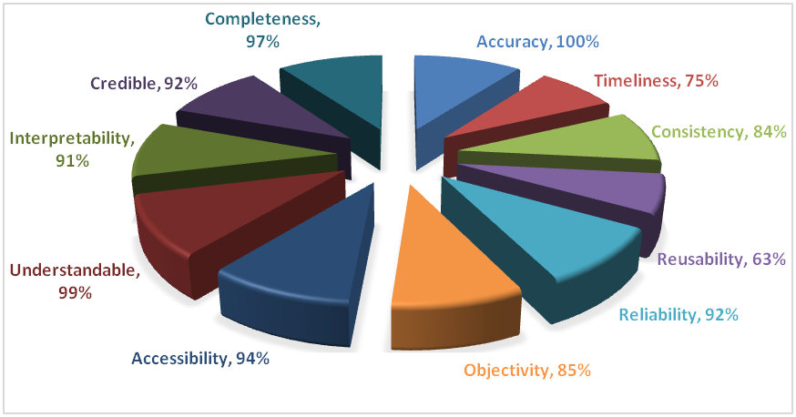 Most of the participants were aware of data quality and its importance in a health care environment. As in this study, all participants agreed that accurate data is quality data. In contrast, 99% of the participants responded that the understandable data is quality, and 97% believed that complete data is quality data. We can compare our study results with the study conducted in Germany, where they found similar results regarding quality data perception [16,20,21].